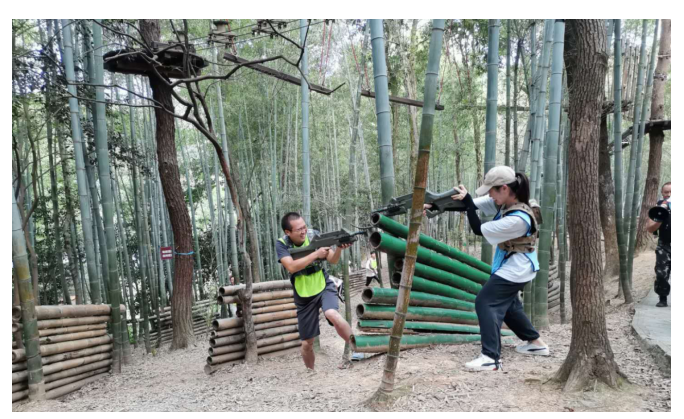 “真人CS镭战”中蓝绿两队争锋对抗,毫不示弱,只见队员们有的侦察指挥、有的掩护瞄射、有的佯攻包抄、有的迂回突破,为了取得“战役”的胜利,大家分工明确、配合默契,团队合作意识得到升华。