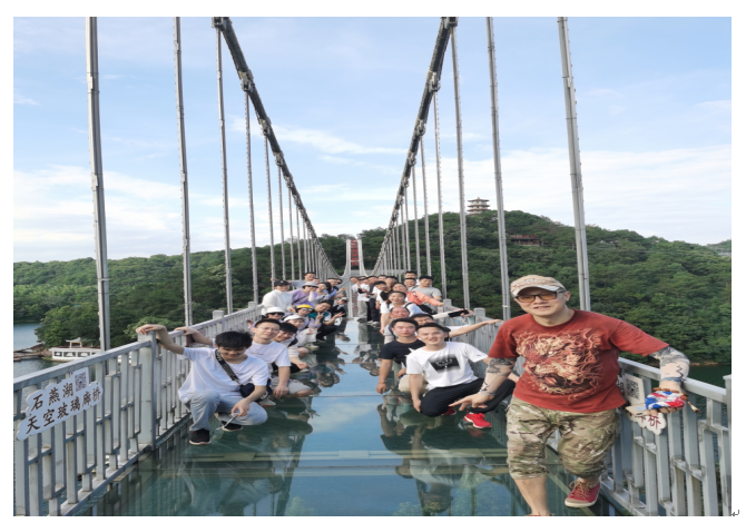 踏上天空玻璃廊桥,石燕湖高山丛林之美尽收眼底,山水环绕,恍若置身人间仙境,此时拓展活动也已接近尾声。