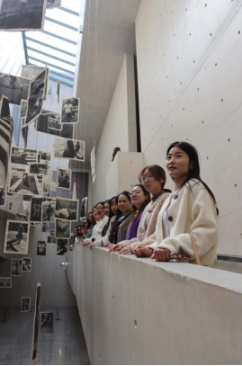 在国内首个博物馆级的谢子龙艺术馆,清水混凝土呈现出几何造型、灰白的冷色调很是别致,现代感与艺术感十足;馆口“漫游她境”主题花墙,呈现出如花如树般隐秘而强大的女性力量,大家赞叹连连。大家欣赏着国内外优秀摄影师、涵盖了各种题材和风格作品,体味着作品中承载的生命之力、刻画的真实之美,深刻感受到了摄影艺术的魅力和力量。