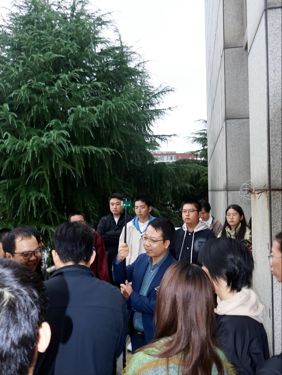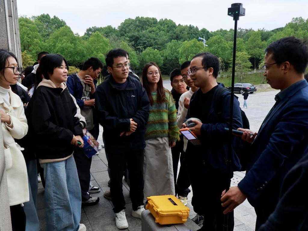 讲座结束后,专家们还进行了户外实操演示。学生在专业人员的指导下,现场观摩并体验了易测APP和配套设备的操作流程,对测绘新技术有了更直观的认识和体验。