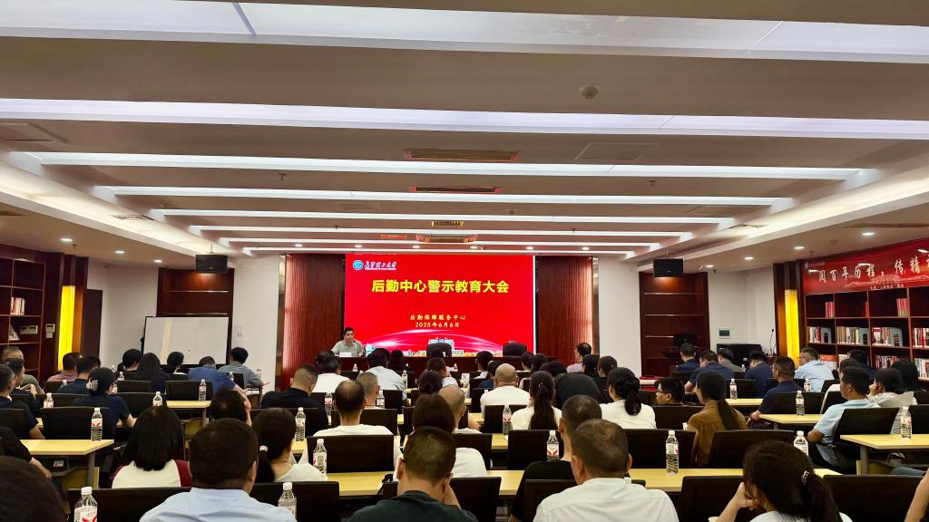 6月6日下午,后勤中心在图书馆B102会议室召开警示教育大会。后勤中心副主任周娇林主持会议。中心全体领导班子成员、各部门班组长以上管理人员、托管食堂项目经理、施工入…