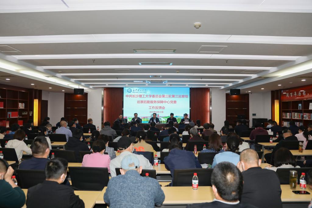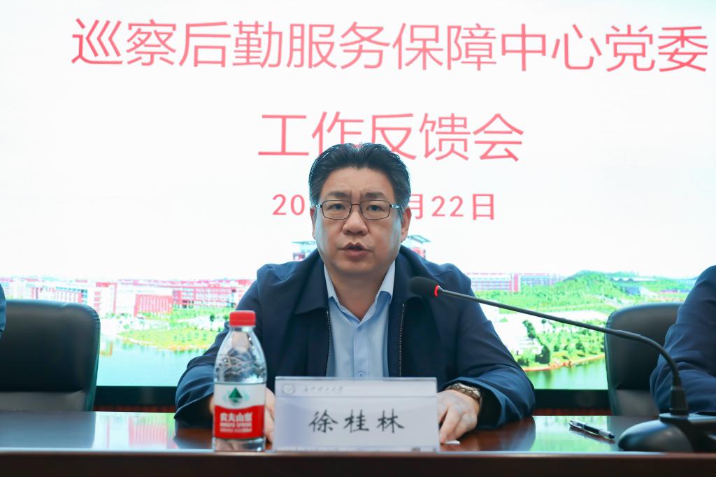 根据学校巡察工作领导小组统一部署,5月22日下午,学校党委第三轮校内巡察第三巡察组巡察后勤服务保障中心党委工作反馈会在云塘校区图书馆B102报告厅召开。校纪委书记、省监委驻永利集团88304官网监察专员、党委巡察工作领导小组副组长徐桂林出席反馈会并讲话,党委第三巡察组组长易贵民分别向后勤服务保障中心党委领导班子和全体教职工通报了巡察反馈意见。校纪委副书记、监察处处长方文彬,巡察组组长、副组长,后勤中心党政班子全体成员、各二级部门副职以上负责人及管理骨干、全体党员及入党积极分子、职工代表大会全体代表参加反馈会。后勤中心主任孔蔚湘主持会议。