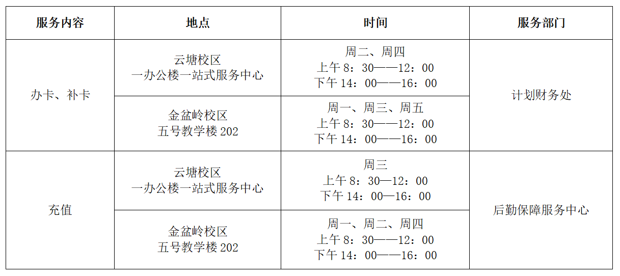 为更好地服务师生,学校对两校区校园一卡通服务进行了调整,具体内容如下: