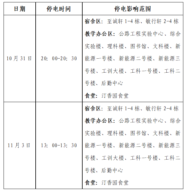 接国网长沙电力公司通知,近期将对云塘校区仙姑岭线路进行检修,届时将会短暂停电。具体停电时间及停电影响范围如下: