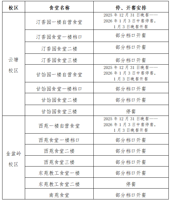 关于2026年元旦节食堂停、开餐的通知