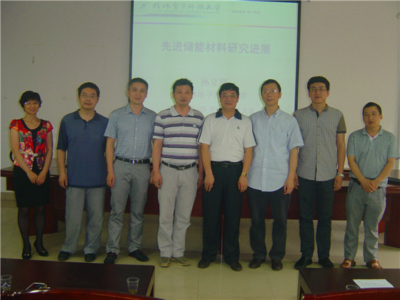 随后,孙教授在工三-A320会议室做了题为“先进储能材料研究进展”的学术报告。孙教授结合其科研团队十几年来在储氢材料、储气材料和相变储热材料等领域的研究经历和发展,详细介绍了新能源材料相关领域对科学与社会发展的重要意义、相关基础科学理论、存在问题、解决办法和最新研究成果,并着重讲述了大量研究成果在能源材料、航天工业、建筑行业、环境领域等等诸多方面的广泛应用。孙教授还向大家介绍了桂林电子科学大学材料科学与工程学院的情况,并表示欢迎各位学生进入桂电深造,欢迎各位老师去桂电交流合作。学术报告会由曹忠主持,副院长吴道新、肖忠良教授、谭淑珍教授、曾巨澜博士和能动学院陈建林博士、汽机学院张健博士等以及化学学院研究生和本科生120余人聆听了此次报告会。同学们均表示孙教授给大家带来了一场精彩的报告,使大家受益良多。报告会结束后,孙教授还与化学学院院长程云辉教授等院领导就团队建设、学科规划、科研创新等问题进行了深入交流与探讨。