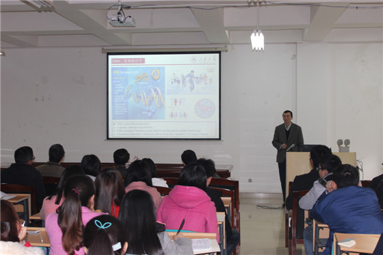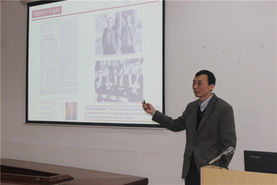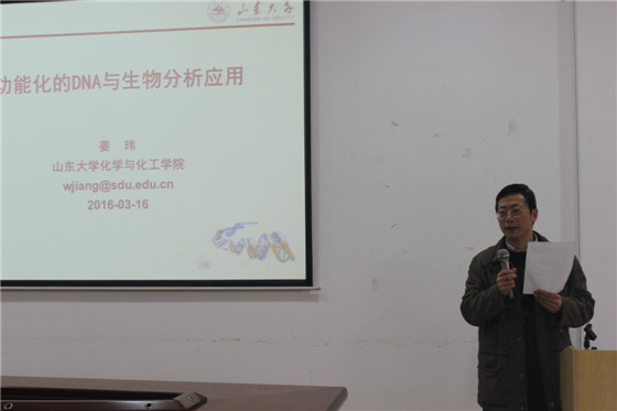 随后于3:30-4:30,在云塘校区工科三号楼A-320室,姜教授为我院师生作了题为“功能化的DNA与生物分析应用”的学术报告,为大家讲解了当前生物化学传感研究领域面临的问题和挑战;同时,结合自己课题组的工作,重点阐述了基于功能化DNA的生物分析,具体介绍了单分子检测、生物传感、活细胞分析等领域的研究成果。