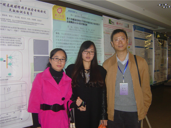 永利官网化学与生物工程学院教师曹忠教授、谭淑珍教授、何婧琳博士及研究生吴玲、陈丹等参加了此次盛会。其中,曹忠教授作为中国仪器仪表学会分析仪器分会化学传感器专业委员会委员,是此次大会的学术委员会成员之一;曹忠教授应邀作报告《一些分子离子选择性传感探针的设计、性能及应用》,何婧琳博士应邀作报告《基于工具酶等温扩增反应的核酸检测方法研究》,研究生陈丹作了题为《氧化石墨烯/二氧化钛-离子液体复合膜修饰电极对多巴胺的灵敏检测》的口头报告;研究小组还展出了6个墙报,其中《以DNA为模板的银纳米簇荧光法用于Hg2+的定量检测》获得大会“优秀报展三等奖”,同时与会上的专家、学者进行了很好的交流,获得大家好评。