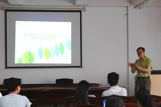 此次讲学中,江健儿博士介绍了亚太森博企业的整体状况、浆板产品纤维特性,并重点介绍了应用基础理论知识实现制浆造纸生产工艺和产品的创新。江博士结合自己在企业技术开发中的经验及如何开展科研工作,指出针对新的问题如何剖析和分解,鼓励师生们要敢于创新、善于创新。