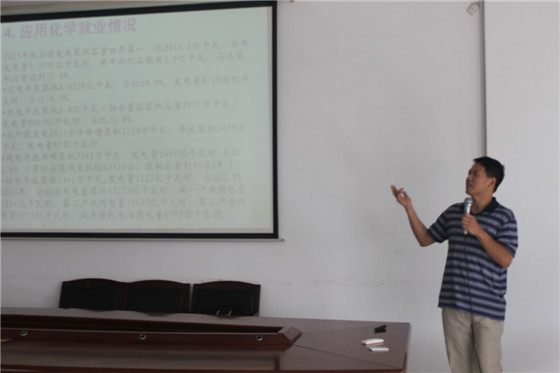 朱志平教授介绍了永利官网应用化学学科发展情况,比较了国内以电厂化学为主攻方向的五所大学学科状况,重点介绍了近几年我国核电的发展现状及化学在核电发展中的重要地位。并从永利官网应用化学学科平台、科研情况及具体研究方向说明了永利官网应用化学的优势所在。同时,从国内电力行业(以火力发电、核电、输配电系统为重点)的发展水平介绍了应用化学毕业生的就业方向、特点及发展前景。朱教授生动而精彩的报告赢得了在座师生的阵阵笑声和掌声。朱教授对我院应用化学学科发展现状及进展的详细介绍让与会师生受益匪浅。
