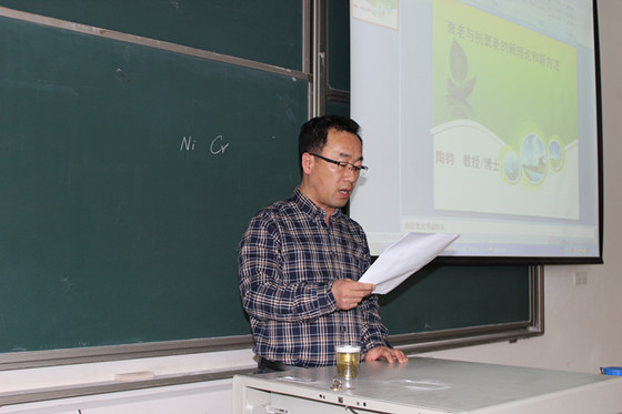 2014年4月29日下午,食品生物技术学科带头人陶钧教授/博士应邀在工科三号楼A-207教室为学院学子作了一场关于“衰老与抗衰老的新理论与新方法”的学术报告。报告会由化学学院副院长王明彦主持,学院教师、研究生及本科生80多人参加。