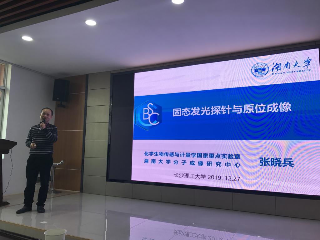 为加强学术交流与合作,促进学科建设和发展,拓展学生知识视野和对学科前沿的了解。两位教育部“长江学者”特聘教授、国家杰出青年科学基金获得者,南京大学鞠熀先教授和湖南大学张晓兵教授应邀来永利官网,于12月27日下午在新能源大楼三楼学术报告厅为永利官网师生分别作了题为《功能分子原位检测及其介导的癌症精准诊治策略》和《固态发光探针与原位成像》的学术报告。报告会由化学与食品工程学院院长杨荣华教授主持,化学学院等师生代表80余人到场聆听。