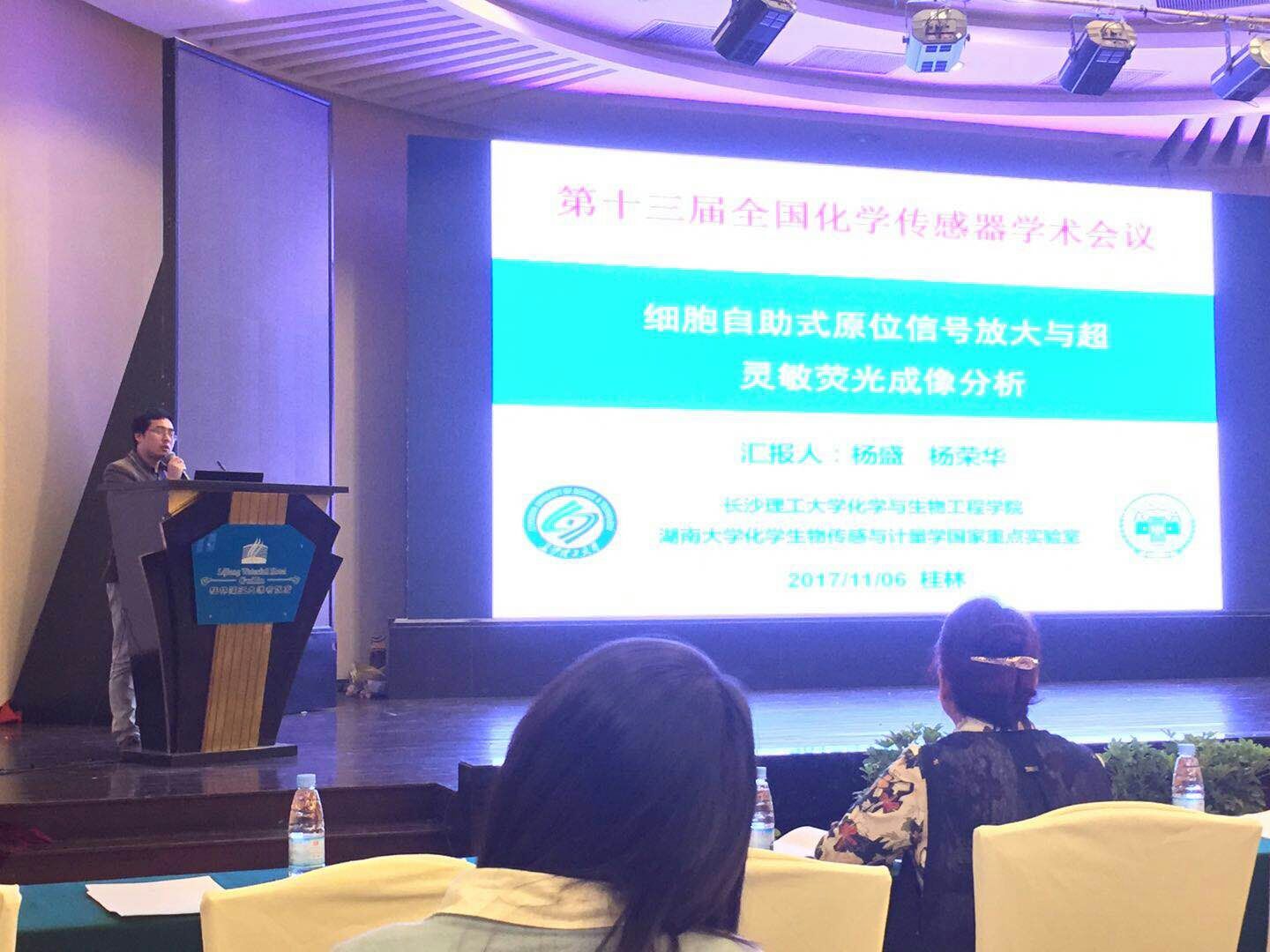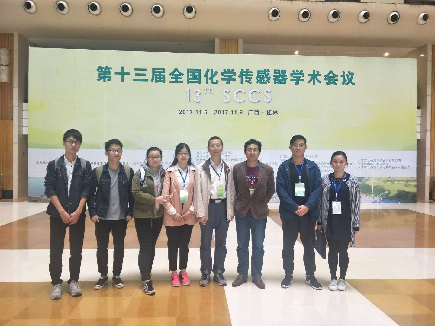 2017年11月5-8日,第十三届全国化学传感器学术会议(13th SCCS)在广西桂林召开,本次会议由中国仪器仪表学会分析仪器分会化学传感器专业委员会主办,桂林电子科技大学承办,湖南大学化学生物传感与计量学国家重点实验室、西南大学纳米材料及传感技术重庆市工程实验室、上海师范大学、江苏电分析仪器有限公司、广西师范大学和桂林理工大学等共同协办。本次会议旨在促进化学与生物传感器的学术交流与发展。永利官网化学与生物工程学院副院长曹忠教授、杨盛博士及研究生一行八人出席了本次会议。