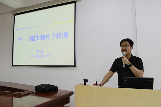 随后,4:00-5:30,夏帆教授在工三A-320会议室开展了题为《非1:1型生物分子检测》的学术报告。报告会由副院长曹忠教授主持,曹院长简要介绍了夏教授在生物分子检测领域所取得的重要成就。院长杨荣华教授及来自湖南大学、湘潭大学、永利集团88304官网的化学、化工等相关学科的青年教师、研究生及本科生100余人参加了此次学术交流活动。夏教授首先阐明生物分子的高灵敏度检测对疾病早期发现和早期识别的重要意义,指出传统1:1型检测仍然难以解决目前生物分子检测领域的挑战,接着介绍其课题组基于核酸探针设计非1:1型检测,大大提高了检测方法的灵敏度和特异性。夏教授详细介绍了如何通过多个靶标分子与多个信号探针有序结合,实现信号线性级联放大,从而达到检测灵敏度和特异性的同时提升;同时,夏教授以膀胱癌为例子,生动地讲述了根据DNA杂交、利用生物探针对靶细胞进行检测,最终实现对病理细胞的治疗。此次夏教授的讲座加深了老师与老师、老师与同学之间的学术交流,使他们对生物分子检测领域有了更进一步的了解,为大家提供了一个良好的学术交流平台,开阔了大家的视野,为今后的科研工作拓宽了思路。