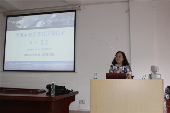 2016年7月1日下午,应化学与生物工程学院环境工程教研室邀请,教育部新世纪优秀人才湘潭大学环境与资源学院院长、博士生导师葛飞教授来永利官网讲学, 在云塘校区工科三号楼A-320会议室作了题为“饮用水安全及其保障技术研究进展”的专题学术报告,报告后由副院长曹忠教授主持,学院教师与学生100余人参加,了解了与我们生活密切相关的饮用水安全问题,对葛飞教授所研究的相关保障技术共同进行了探讨。