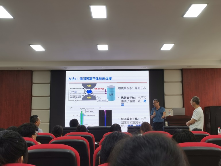 胡家文教授分别从自身研究领域出发,仔细介绍了发现纳米焊接技术的灵感来源,言简意赅地为同学和老师们讲解了纳米焊接技术的反应机理,介绍了外场强化的Ostwald纳米焊接在内的一系列低温纳米焊接技术,并详细阐述了将电流强化的表面扩散焊接和低温等离子体纳米焊接技术所应用到的领域,为纳米焊接技术将来的发展提供了一个有力的理论和实际支撑。