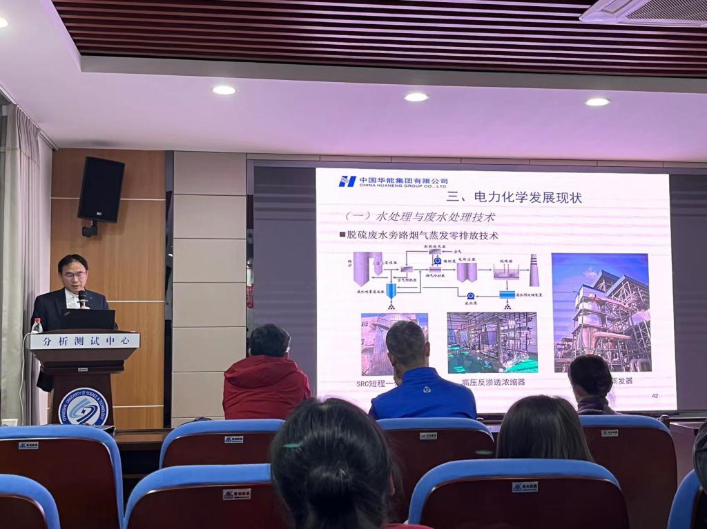 当天下午16:20,在云塘校区新能源大楼分析测试中心报告厅3B301,汪德良研究员作了 “中国电力化学专业发展历程与未来”专题讲座,化学化工学院部分教师及研究生、材料学院材料与化工研究生共计90余名师生参加。汪总从四个方面介绍了中国电力及电力化学的发展历程、现状及未来。历时2个多小时的讲座,内容丰富,层层递进,在现场师生的热烈掌声中完美结束,在场师生深受启发,增强了积极参与电力行业发展相关研究课题的信心。