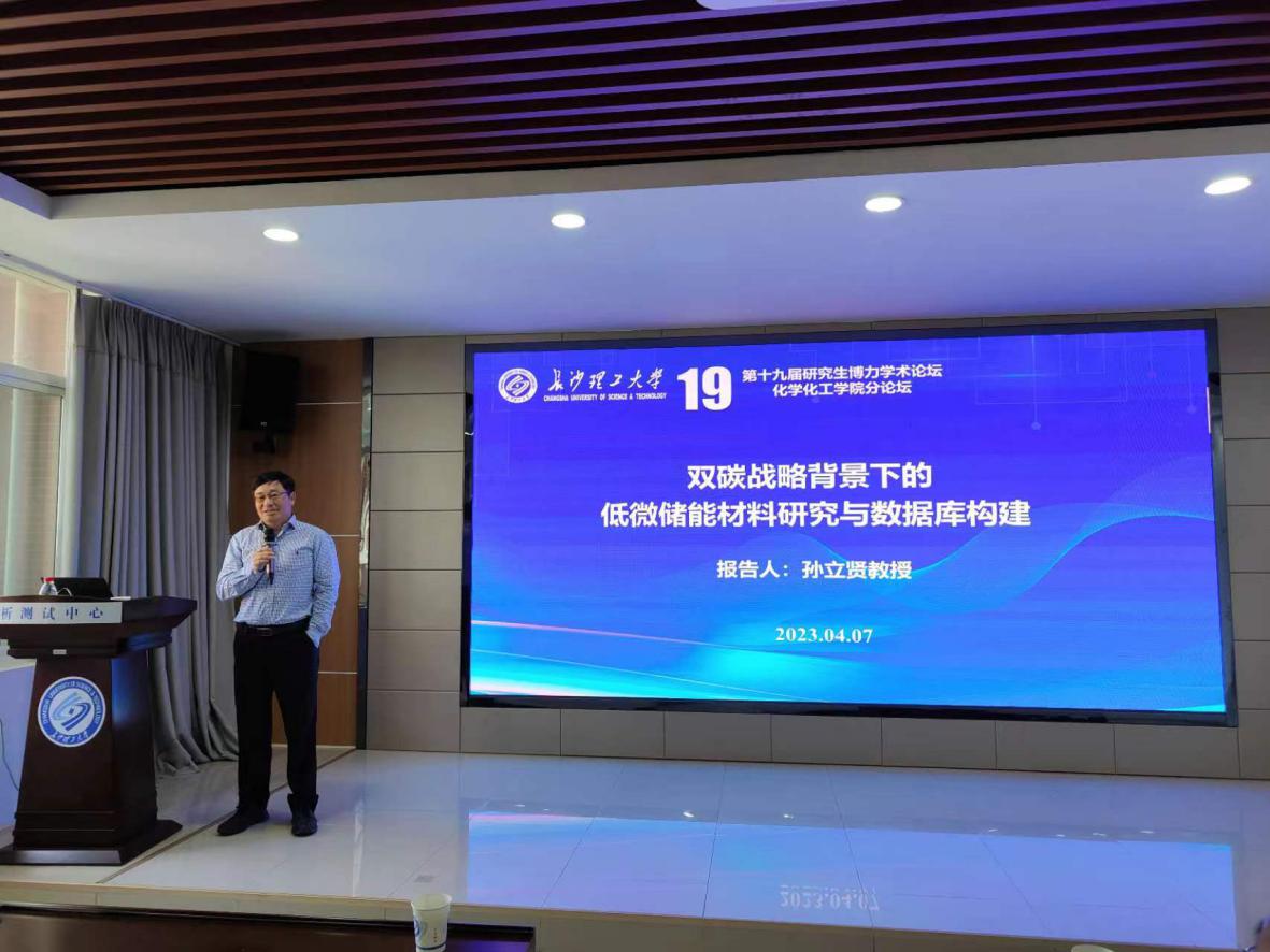 2023年4月7日上午,应永利集团88304官网化学化工学院邀请,桂林电子科技大学博士生导师孙立贤教授来永利官网进行学术交流访问,在云塘校区新能源大楼3B栋301报告厅作了题为“双碳战略背景下的低微储能材料研究与数据库构建”的学术报告。学术报告会由化学化工学院副院长卿志和教授主持,陈启杰副院长、喻林萍副院长、曹忠教授、朱志平教授及部分老师和研究生100余人参加了本次讲座。