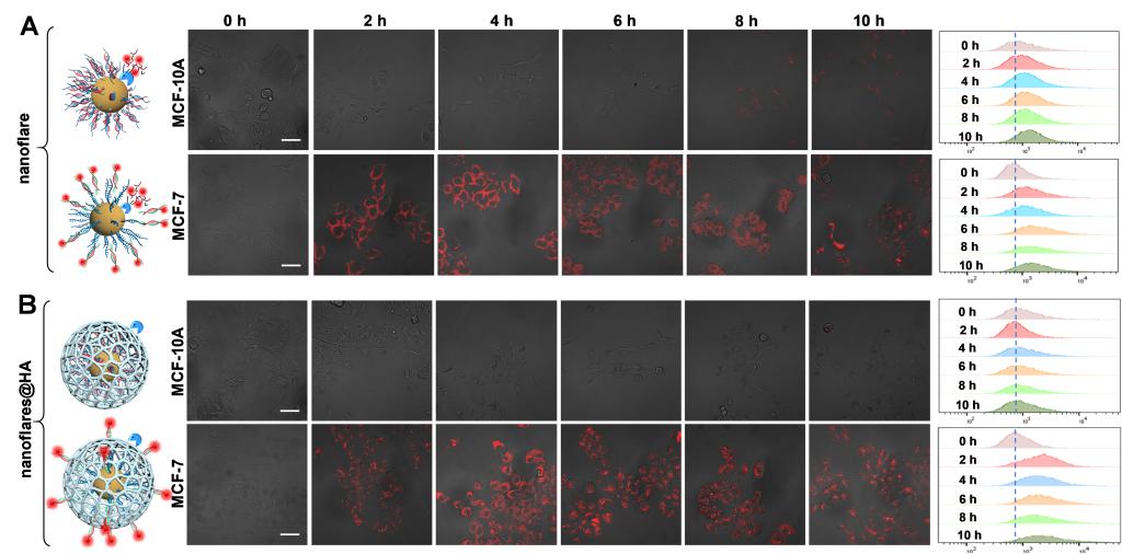 图2:细胞孵育纳米笼核酸保护探针与常规探针荧光成像图