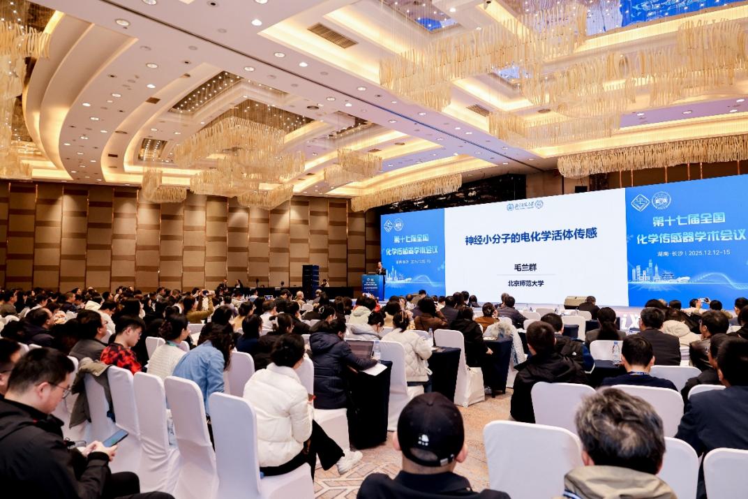 2025年12月12日至15日,第十七届全国化学传感器学术会议(17th SCCS)于湖南长沙成功举办,本次会议由中国仪器仪表学会分析仪器分会化学传感器专业学组(专业委员会)和湖南大学主办,化学生物传感全国重点实验室(湖南大学)、湖南大学化学化工学院承办,上海师范大学、西南大学、江苏江分电分析仪器有限公司和仪器信息网协办。本次大会旨在促进化学与生物传感领域的学术交流与发展。会议期间举办了大会报告和分会报告201场,涵盖了化学生物传感领域的新方法、新技术、新仪器、新成果及实践应用方面的最新进展,吸引了来自全国各地的600多位专家学者和业界同仁参会。永利集团88304官网科技处副处长、细胞化学湖南省重点实验室主任卿志和教授,电力与交通材料保护湖南省重点实验室主任曹忠教授,以及化学与医药工程学院教师和研究生10余人参加了本次大会。