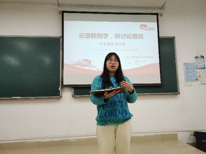 民族复兴千年伟业,百年恰是风华正茂......抚今忆惜,意往神追,我们向一毛泽东、蔡和森为代表的新民学会先辈致敬”一首夏远生同志纪念新民学会成立百年的纪念文章在化学与食品工程学院学生党员中流传开来。原来,在新民学会成立103周年之际,该学院在组织开展“云游新民学,研讨论增信专题研讨学习活动,旨在引导学生认真学习党史,从党史中寻找理论滋养,坚定对马克思主义的信仰。
