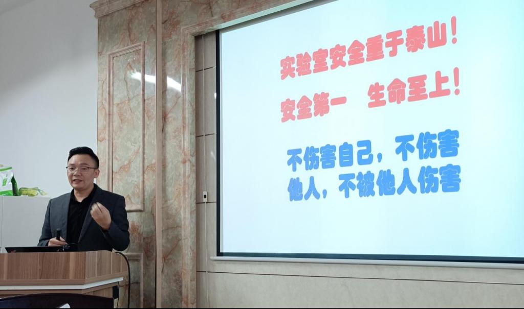 实验与资产处副处长李江胜就实验室安全做了专题报告,详细介绍了实验室安全操作以及应急措施,希望大家时刻牢记生命至上,安全第一。之后师生一起进行实验室安全知识抢答,进一步强化了实验室安全意识。