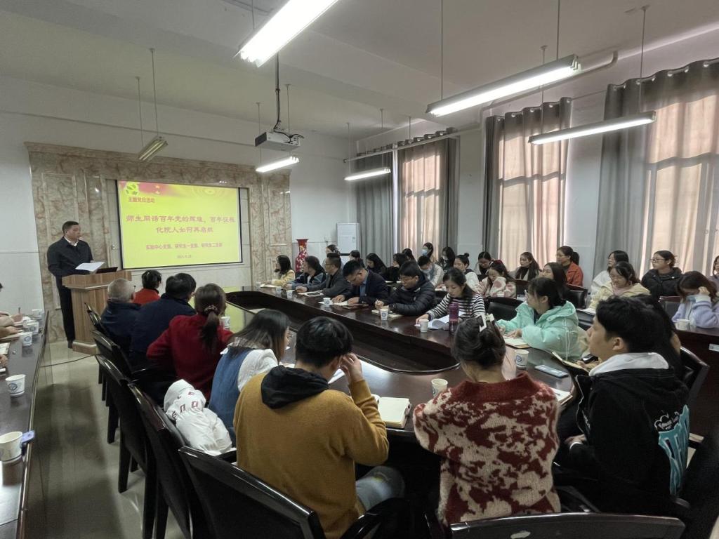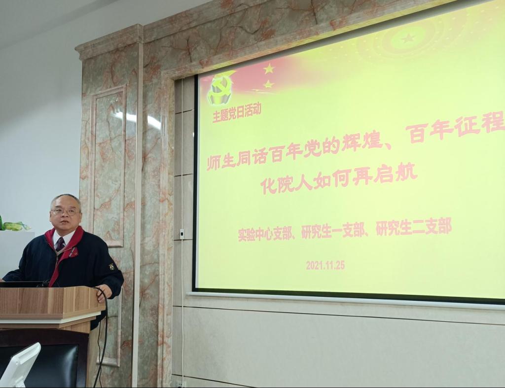 11月25日上午,永利集团88304官网化学化工学院实验中心党支部和研究生一、二支部在工三B318联合开展“师生同话百年辉煌,百年征程,化院人如何再启航”主题党日活动。