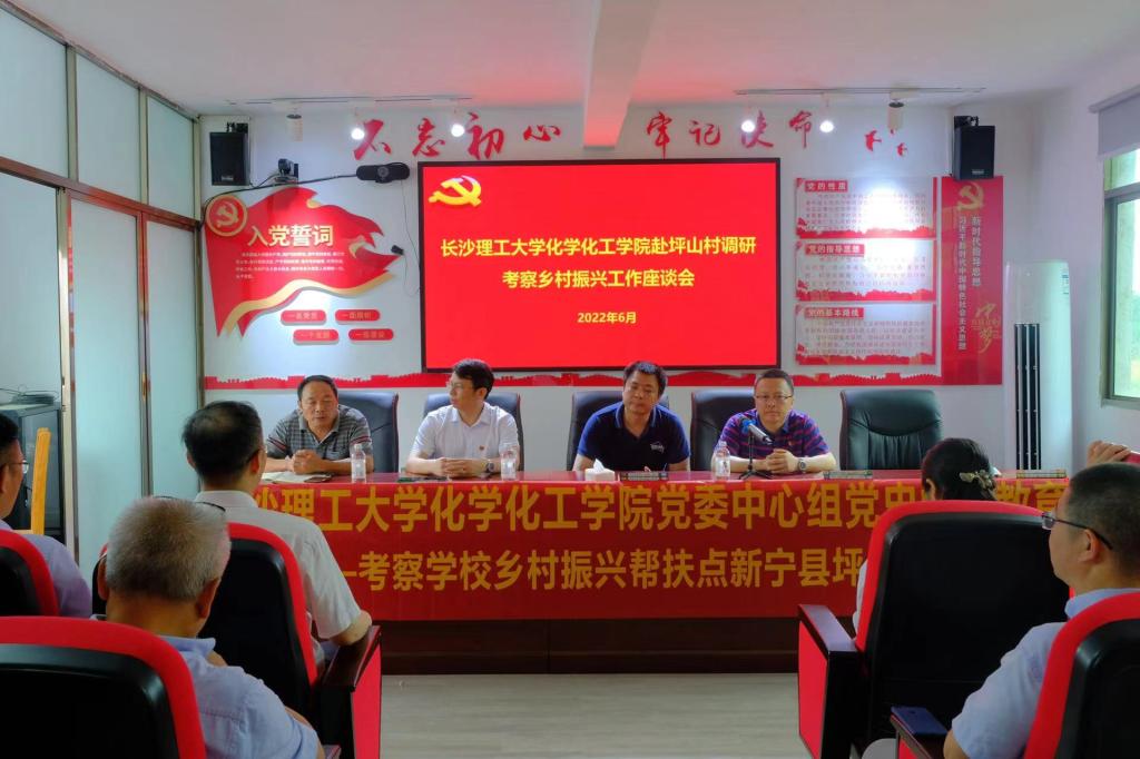为深入学习习近平新时代中国特色社会主义思想和习近平总书记关于实施乡村振兴战略重要论述精神,创新理论学习形式,切实服务区域经济社会建设,积极助力乡村振兴,2022年6月16日,化学学院党委理论学习中心组赴新宁县坪山村调研乡村振兴工作。学院党委书记宋刘斌带领中心组学习成员深入田间地头,采取“现场学习+调研+慰问+学习研讨”的形式进行了深入的学习交流,把“课堂”设在乡村振兴、美丽乡村建设第一线。学院中心组全体成员,永利集团88304官网乡村振兴驻坪山村工作队队长吴振华,队员曾宪禄、刘军,坪山村村委会主任蒋新华等村“两委”干部及村民代表参加此次学习活动。