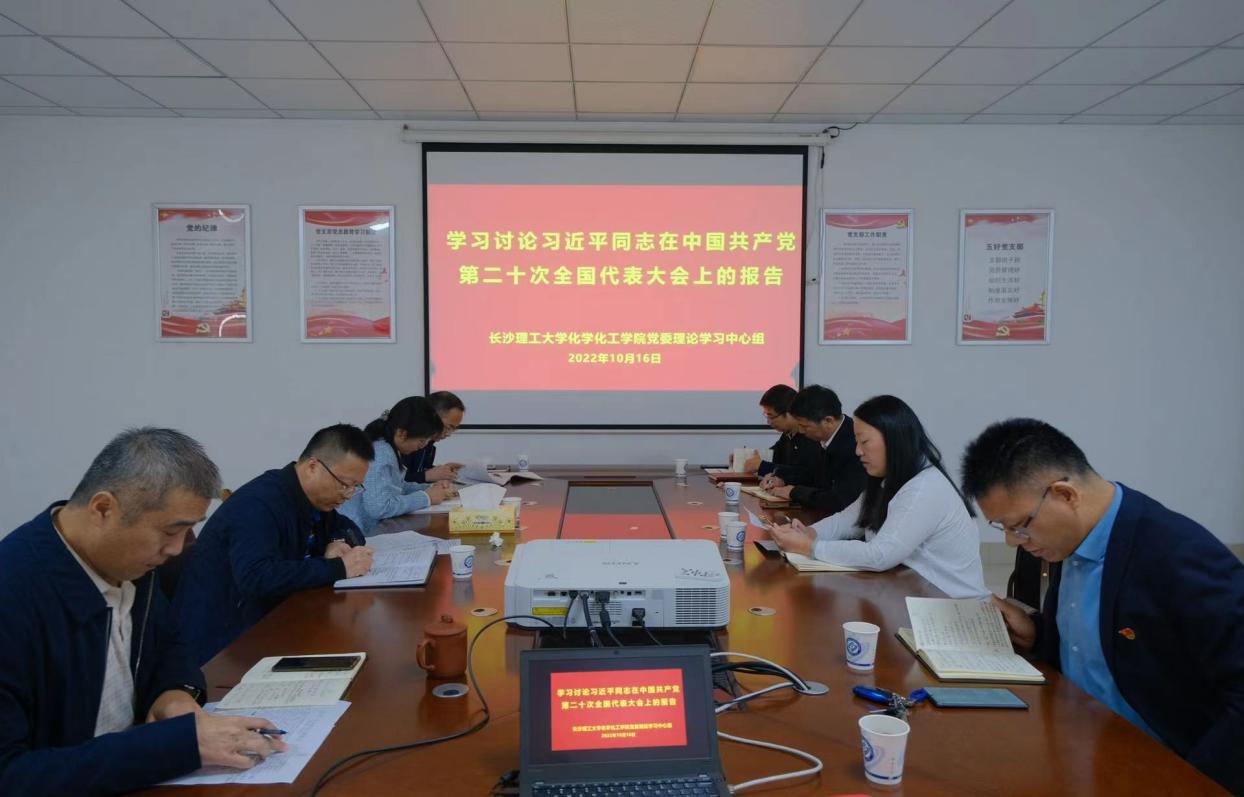 10月16日上午,学院党委理论学习中心组在新能源大楼3B栋301分析测试中心报告厅组织集中收看中国共产党第二十次全国代表大会开幕会,第一时间学习讨论习近平同志代表第十九届中央委员会向大会作的报告。中午,党委书记宋刘斌主持学习讨论并讲话,全体中心组成员参加学习。