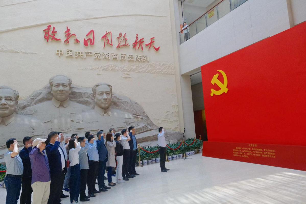 在陈列馆序厅,宋刘斌带领全院中层干部面向党旗一起重温入党誓词。“每学一次党史都是一次深刻的精神洗礼,每学一次党史都有一次新的收获”。大家跟随讲解员的脚步,通过参观“敢教日月换新天——中国共产党湖南党史陈列”展览和“长沙建党、革命洪流、星火燎原、抗日救亡、湖南解放”五个专题展厅。对党史、新中国史、改革开放史、社会主义发展史的整体发展脉络、重大事件和显著成就有了更加深刻的了解。随着讲解的不断深入,大家更深刻领会了湖南近代仁人志士敢为天下先的革命精神,进一步感受到湖南共产党人在中华民族救亡图强道路上作出的巨大贡献和牺牲。