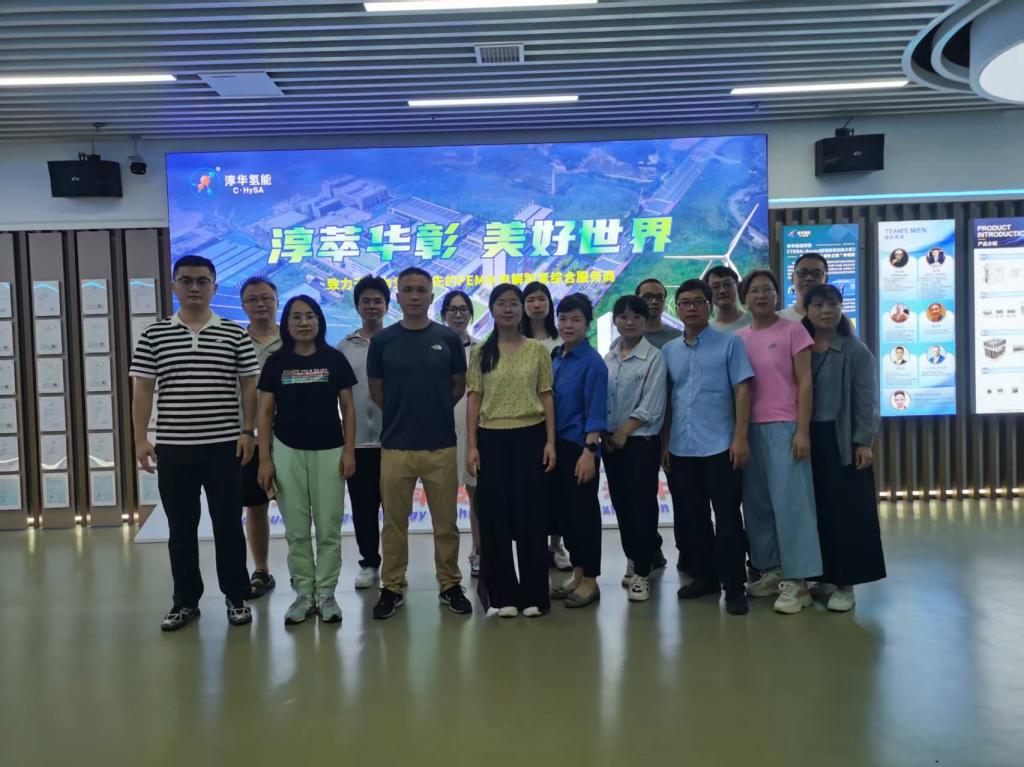 随后,一行人来到淳华氢能科技有限公司。在企业氢能科技馆,党员们系统学习了氢能产业链的技术原理、应用场景及绿色低碳优势;在生产车间,自动化的质子交换膜电解水制氢电解槽生产线、氢气提纯设备让大家直观感受到氢能作为“未来能源”的发展潜力。学院副院长喻林萍表示:“高校党支部要与企业党组织加强联动,把党建优势转化为创新优势,让科研成果真正服务产业需求。”