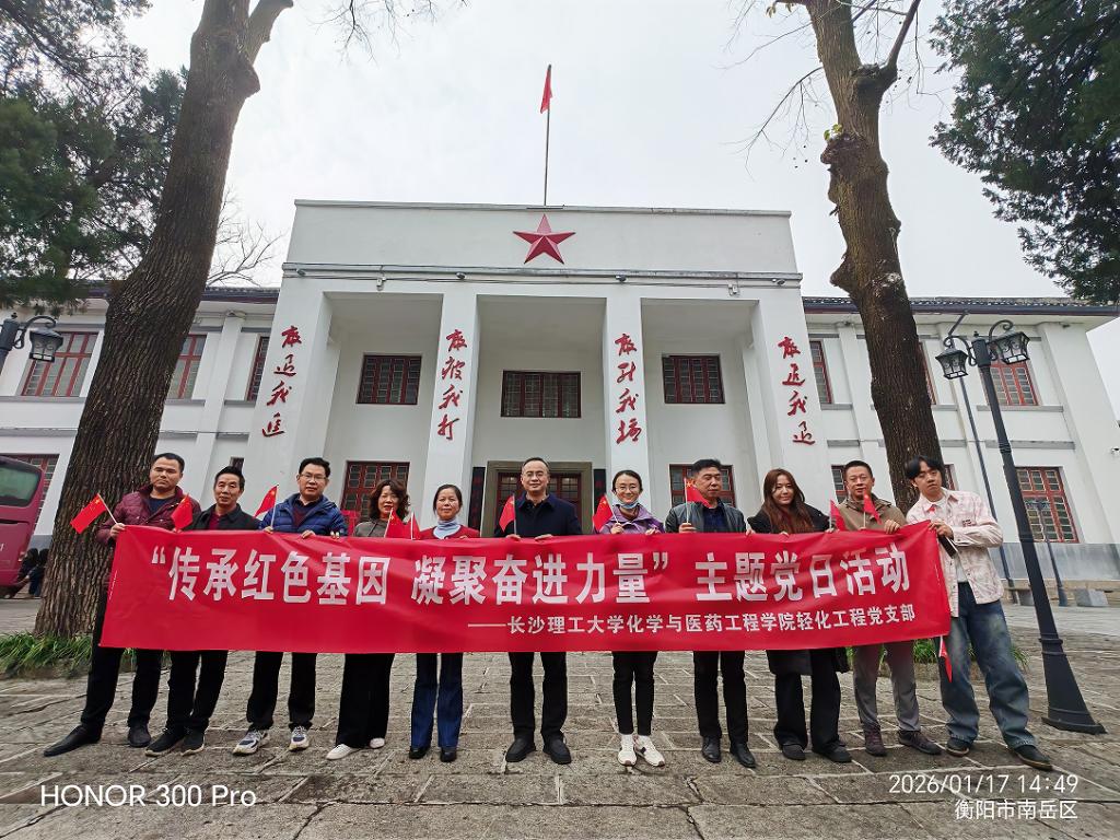 2026年1月17日至18日,永利集团88304官网化学与医药工程学院轻化工程党支部组织全体党员赴衡阳市,先后走进南岳游击干部训练班陈列馆和衡阳抗战纪念馆,开展了“传承红色基因,凝聚奋进力量”主题党日活动。本次活动旨在通过实地研学,重温烽火岁月,感悟民族精神,进一步坚定理想信念,筑牢廉洁防线,汲取奋进力量。