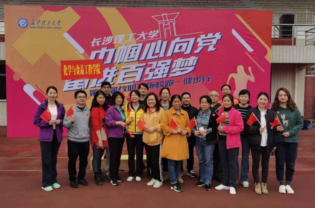 化学与食品工程学院分工会广泛发动,精心组织,参赛的教职工精神抖擞,手持党旗、国旗,脸贴,以健康向上的活力为环校跑(健步行)活动增光添彩。