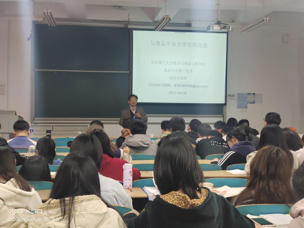首先,许宙从培养目标,专业特色,专业师资力量展开介绍了食品科学与工程专业。以最近的315沃柑事件引出食品安全问题,并就食品安全检测专业的核心课程,课程目标进行简要概述。接下来,李向红从学科简介,学科方向,人才培养三方面介绍了永利官网食品科学与工程专业的优势,并着重介绍了学科主要研究方向,分享了代表性毕业生的发展方向。下一位是吴苏喜,他以幽默风趣的语言风格,通过与同学们面对面的交流,从我们大学生为什么要学习?我们专业是干什么的?我们需要学习什么?有什么优势?等四个方面讲述了他对食品科学与工程专业的见解。