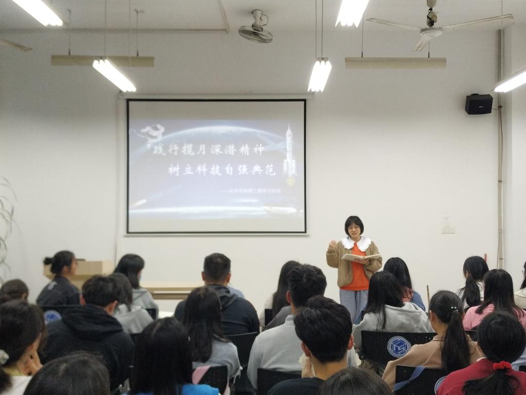 326日晚,化学学院学生党总支在工三B210举办期学习论坛,本期主题为“践行揽月深潜精神,树立科技自强典范”。论坛由应化支部唐思思主持,部分党员和积极分子代表参加。