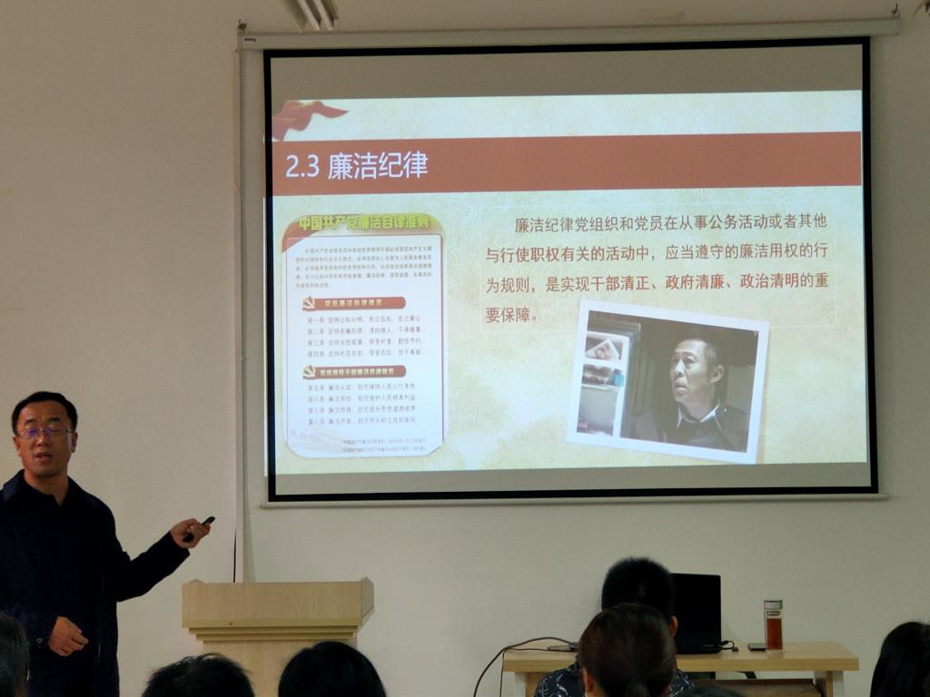 课上王教授主要从党的纪律概述、党的纪律主要内容、党的纪律处分和党的纪律建设四个方面展开。首先,纪律指为维护集体利益并保证工作进行而要求成员必须遵守的规章、条文,它具有历史性、阶级性和强制性。党的纪律是党的各级党组织和全体党员必须遵守的行为规范和规则,它包括党章、党的成文规定、国家法律等,加强纪律建设是全面从严治党的治本之策,要把党的纪律刻在全体党员特别是党员领导干部的心上。不管是历史上的哪一个时期,总会出现党员干部轻视党的纪律最终遭受党规党纪甚至国家法律的处分和制裁。其次,党的纪律涵盖多个方面,主要包括政治纪律、组织纪律、廉洁纪律、群众纪律、工作纪律和生活纪律六大方面,无论违反了哪一方面,最终都会受到党和国家的处罚。然后,党的纪律处分类型包括警告、严重警告、撤销党内职务、留党察看、开除党籍;对党组织的纪律处理措施包括改组和解散。最后,王教授讲解了党的发展建设史以及当前党的纪律建设主要做法,重点突出党在反腐倡廉上的清醒与坚定。