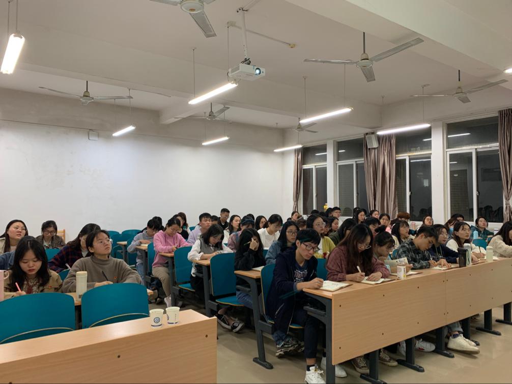 11月11日晚19:00,化学学院与外国语学院第二十二期预备党员培训班于文科楼A301联合开展第二次党课,由校党委组织部干部科李芳瑾老师授课,主题为《预备党员如何度过预备期》。