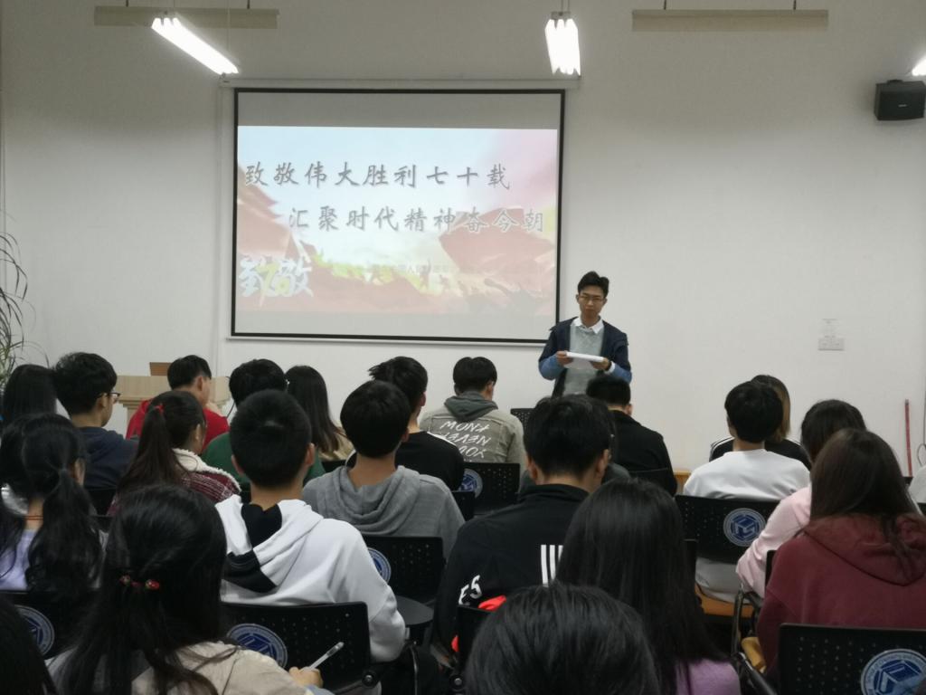10月30日晚,化学学院学生党总支在工三B210举办第六期学习论坛,本期主题为“致敬伟大胜利七十载,汇聚时代精神奋今朝”。论坛由生物支部王跃峰主持,部分党员和积极分子代表参加。