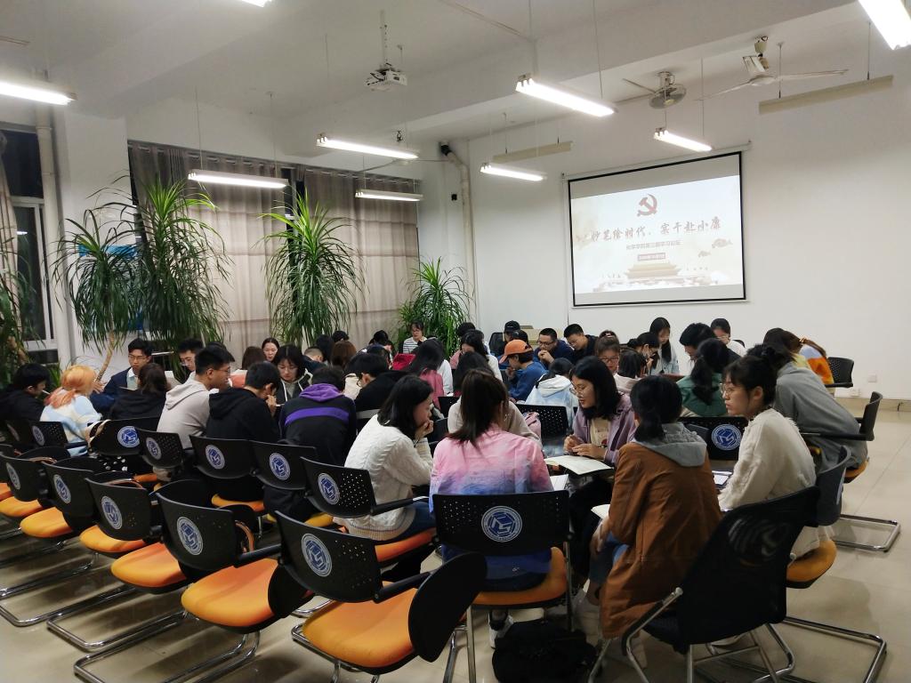 10月9日晚,化学学院学生党总支在工三B210举办第三期学习论坛,本期主题为“妙笔绘时代,实干赴小康”。论坛由化工支部江晓敏主持,部分党员和积极分子代表参加。