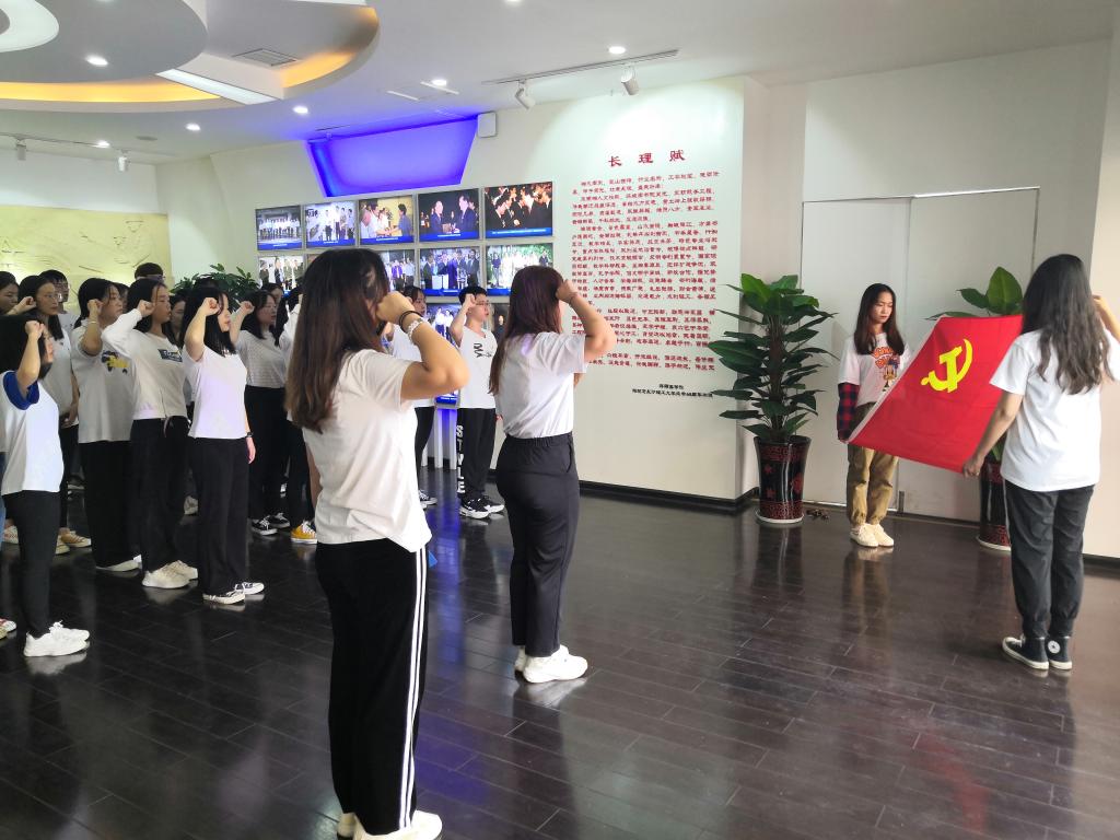 9月19日中午,永利集团88304官网化学与食品工程学院组织44名新发展党员同志在校史馆开展入党宣誓活动。党建辅导员刘文成、学生党总委员及全体新发展党员同志参与本次活动,生物支部商艳同志担任主持人。