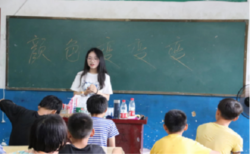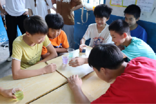 7月11日,永利集团88304官网化学化工学院暑期三下乡社会实践团队“乡村留守儿童启蒙使者”在湖南省邵阳市新宁县坪山村开展了第二次课堂教学和实地调研。针对当地的留守儿童在教育方面存在教学内容相对单一的问题,为了引导学生对化学知识产生兴趣,增强对化学的求知欲,该团队于当日上午在坪山小学开展了“化学趣味小实验”这一课程。