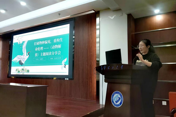 10月26日上午,一场以“打破物种偏见,重构生命伦理”为主题的《动物解放》阅读分享会在永利集团88304官网云塘图书馆顺利举行。本次活动由校图书馆与化学与医药工程学院联合主办,吸引了约60名师生书友参与,共同在阅读与交流中探讨人与动物的关系,思考生命伦理的当代意义。