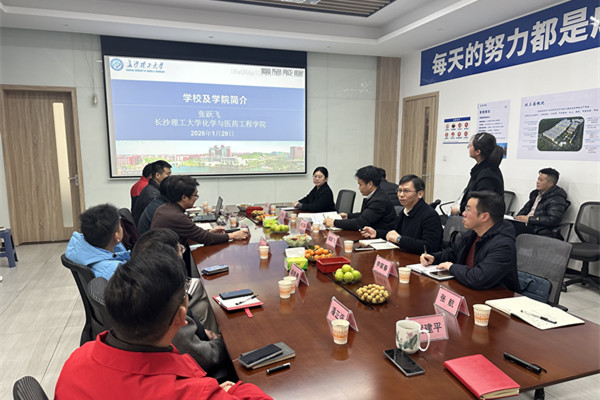 张跃飞介绍了化学与医药工程学院在学科建设、科学研究、人才培养等方面的特色与优势。他指出,学院的专业设置、研究方向与企业的主营业务和新技术发展方向高度契合,双方合作潜力巨大。他希望以此次交流为契机,构建起常态化的校企互动机制,不仅在毕业生就业实习方面建立稳定渠道,更能在校企联合技术攻关、共同申报科研项目、共享实验室资源等方面开展实质性合作,实现“优势互补、资源共享、互利共赢”。