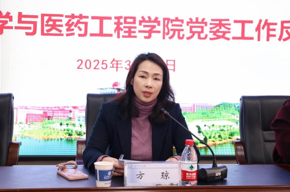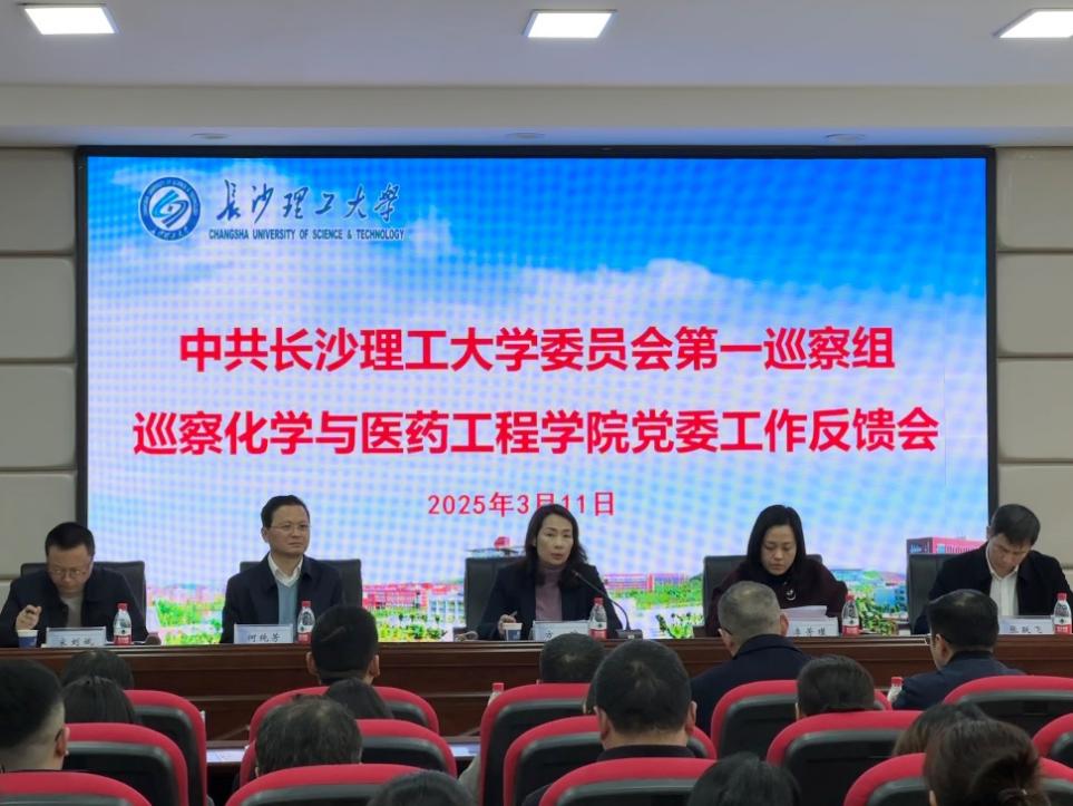 2025年3月11日,校党委第一巡察组巡察化学与医药工程学院党委工作反馈会在工科三号楼A320召开,校党委副书记方琼,组织部副部长李芳瑾,校党委第一巡察组组长何纯芳、副组长孔凡志、联络员李武,化学与医药工程学院全体在职教职工参加会议,学院院长张跃飞主持会议。