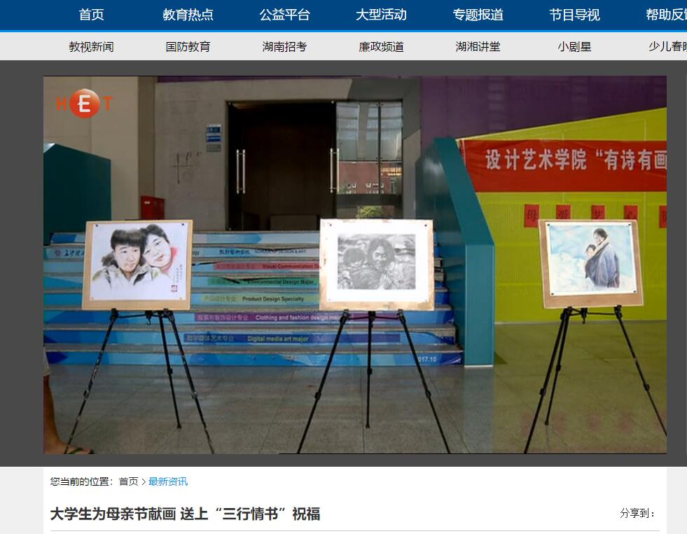 湖南教育电视台5月14日对永利官网设计艺术学院组织的母亲节“三行情书”送祝福活动进行了宣传报到。经过两个星期的精心准备,设计艺术学院的学生为母亲献上了自己用心绘制的画作,并以“三行情书”的形式录制了祝福视频,向母亲表达了爱与祝福。近年来,设计艺术学院契合节日主题,将学生专业教育与弘扬中华传统文化和社会主义核心价值观教育相结合,开展了一系列积极向上的校园文化活动。
