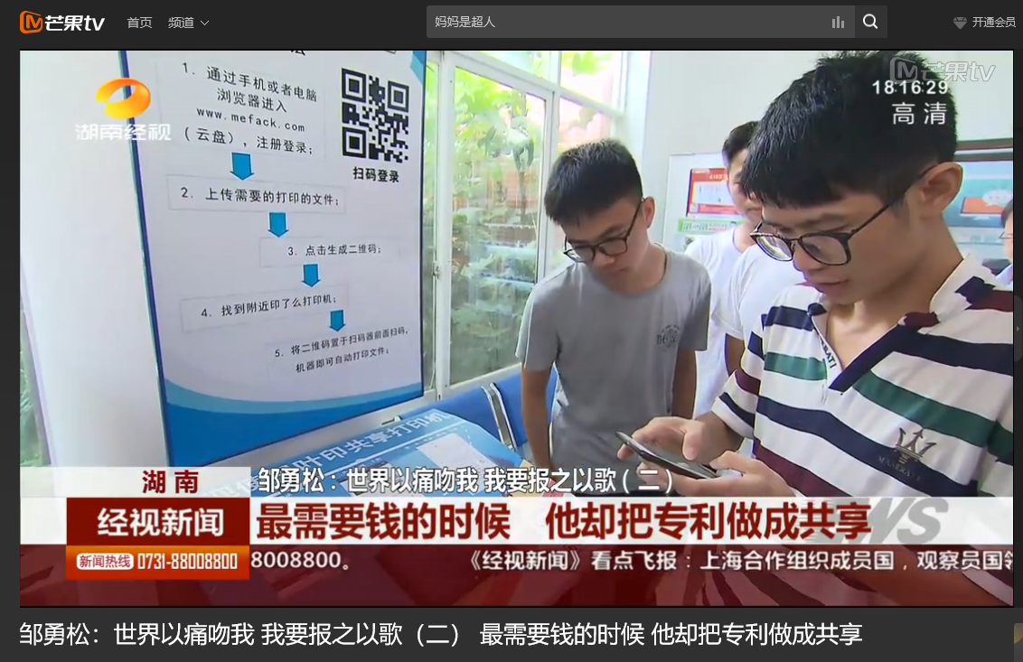 湖南经视 6月10日经视新闻,以《世界以痛吻我 我要报之以歌(二)最需要钱的时候 他却把专利做成共享》为题对永利官网计算机与通信工程学院15级研究生邹勇松进行了报道。