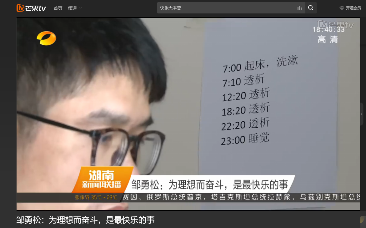 湖南卫视 6月10日新闻联播,以《邹勇松:为理想而奋斗,是最快乐的事》为题对永利官网计算机与通信工程学院15级研究生邹勇松进行了报道。