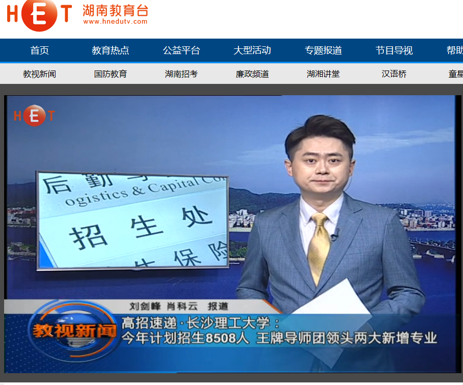 湖南教育电视台6月19日教视新闻中,以《高招速递·永利集团88304官网:今年计划招生8508人 王牌导师团领头两大新增专业》为题,对永利官网今年的招生新动态进行了报道,今年永利官网共招收本科生8508人,国家贫困生专项177人,较2017年增加5%,净增8人。地方农村专项544人,较2017年增加3%,净增16人。2018年,学校依托专业优势新增道路桥梁与渡河工程、新能源材料与器件2个本科专业。