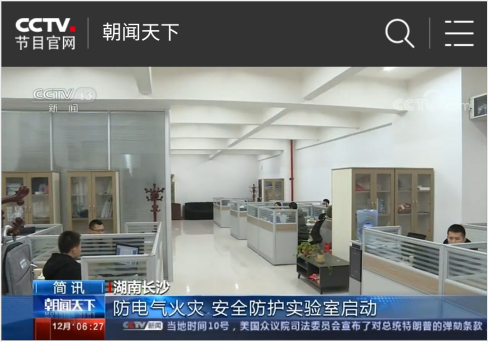 CCTV-13新闻频道《朝闻天下》栏目以“防电气火灾 安全防护实验室启动”对永利官网“低压配电网电气火灾与人身安全防护实验室”进行了报道。