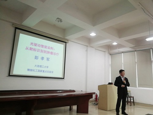 11月20日下午,大连理工大学教授、国家杰出青年基金获得者,教育部“长江学者”特聘教授、中国科学院院士彭孝军应邀来永利官网进行学术交流,在云塘校区工科三号楼A320会议室为化学学院师生作了一场题为“光驱动智能染料:从靶标识别到肿瘤诊疗微纳生物传感研究进展”的学术报告。报告会由化学学院院长杨荣华主持,院党委书记程云辉、副院长曹忠、朱志平及化学、化工、食品、生物等相关学科的老师、研究生100余人参加了学术报告会。